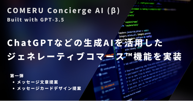ノーコードデジタルカードメッセージサービスを提供する株式会社comeru(本社:大阪府大阪市北区角田1-12 阪急ファイブアネックスビル2階、代表:石月 裕昭)は、ChatGPTなどの生成AIを活用したジェネレーティブコマース(TM)機能の開発を開始し、2023年4月27日(木)より、β版を公開しました。今後、新機能も追加予定であり、早期に試すことができる事前登録も受付開始しました。また、ジェネレーティブAIを自社サービスとして活用するだけでなく、企業に向けて活用支援サービスも開始いたしました。