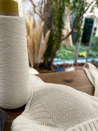 繊維が短く通常のシルクを織る際に使用出来なくなった短繊維のシルクを集め、紡いだサスティナブルな素材になります。