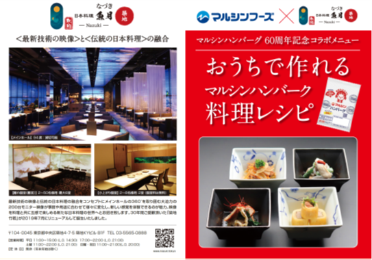 日本料理 魚月-Nazuki-(所在地:東京都中央区 / 株式会社ムーンライト 代表:山本健太)は、株式会社マルシンフーズ(本部:東京都中央区、社長:吹上渡)と、築地に拠点を置き“食”で繋がる企業同士で、2022年6月15日(水)から7月15日(金)の期間限定コラボレーション企画を実施します。第1弾として5月に実施した「不二の梅こぶ茶を使った鯛めし御膳」にひき続き、第2弾として店内に常設する約200台のモニターを活用した、食のエンターテインメントをご提供します。