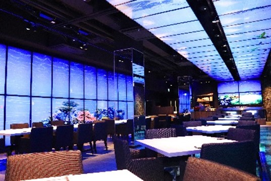 最新技術の映像と伝統の日本料理の融合をコンセプトにメインホールの360°を取り囲む大迫力の200台モニター映像が季節や用途に合わせて様々に変化し、新しい感覚を体験できるのが魅力、映像を料理と共に五感で楽しめる新たな日本料理の世界へとお招き致します。30年間ご愛顧頂いた「築地 竹若」が2019年7月にリニューアルして誕生いたしました。