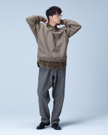 リラックス感のあるルーズフィットシルエットでありながら、楽な着心地のみにフォーカスしたオーバーサイズではなく、どんなスタイリングやレイヤードであってもバランスよく決まる丈感や身幅を追求した。