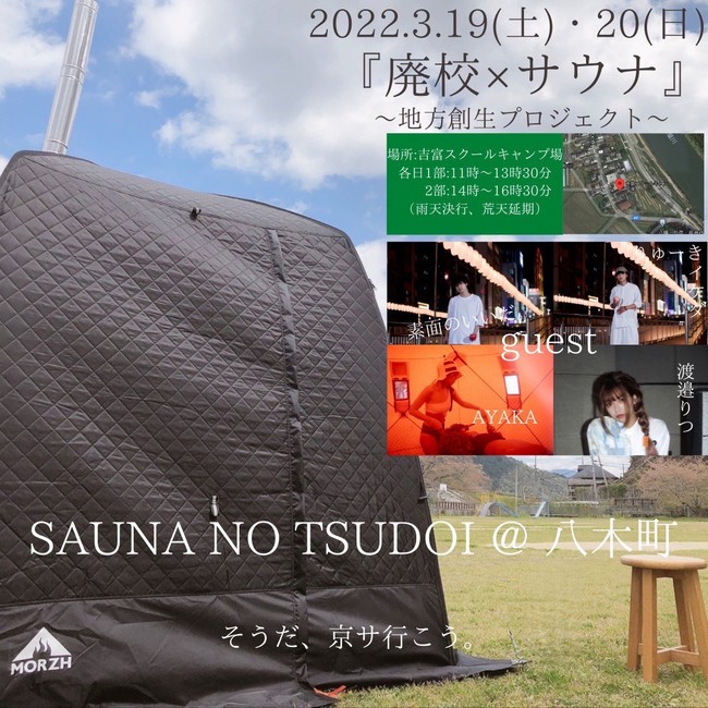 SAUNA NO TSUDOIは、サウナを通して過疎化していく地域を活性化したいという想いのイベントで、今回は「廃校×サウナ」という企画で地域住民とサウナベンチャー企業、温浴施設が手を取り合って開催します。全国のサウナ愛溢れる方々がこの廃校に訪れ、サウナを通して地域創生が図れるという学びを新しく感じて頂ければと思っています。