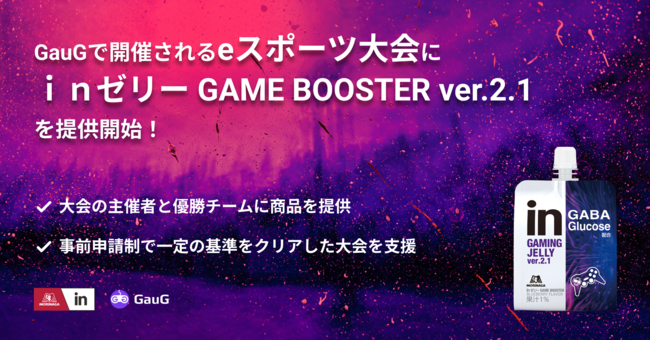 ゲーマー向けコミュニティプラットフォーム『GauG(ゴーグ)』は、GauG内で開催されるeスポーツ大会に森永製菓株式会社(本社 : 東京都港区芝、代表取締役社長:太田 栄二郎、以下森永製菓)のeスポーツコミュニティ大会支援プログラム、「inゼリー Game Community Boost 」を通して inゼリー GAME BOOSTER ver.2.1 を提供します。