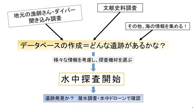 台風や津波などの自然災害も少ない地域なため、水中遺跡がそのまま残されている可能性が高い。
