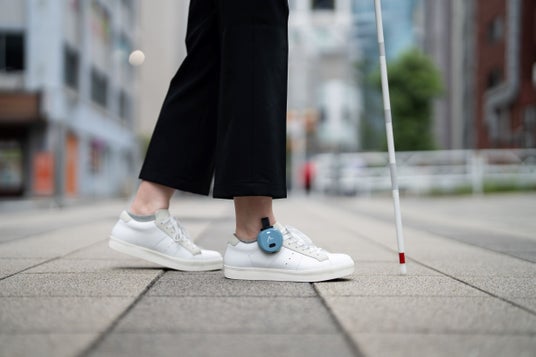 あしらせは、視覚に障がいのある方向けの歩行ナビゲーションシステムです。アプリに目的地を入力すると、靴に装着したデバイスが振動で道案内を行うため、視覚に障がいのある方にとって重要な聴覚や白杖操作などを妨げることなく歩行をサポートします。ユーザーの声をもとに、随時サービスのアップデートを行っています。