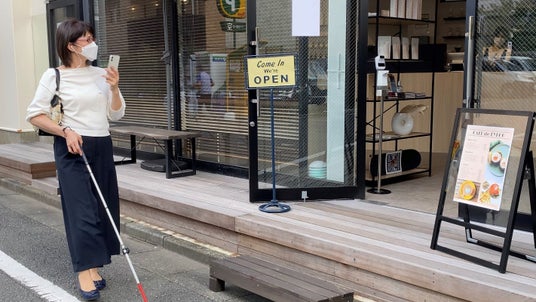 スマートフォンの映像を通じて、専門のオペレーターが視覚情報をお伝えするサービスです。タイムリーに視覚情報を得ることにより、生活面での利便性を高め、視覚に障がいのある方がいつでも気軽に安心して行動できることを目指しています。位置情報と映像を遠隔地にいるオペレーターが確認してご案内します。安心してご利用いただくため、コンタクトセンターは厳格な個人情報管理のもとで運営され、専門の研修を受けたオペレーターが対応します。