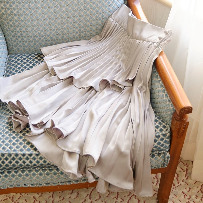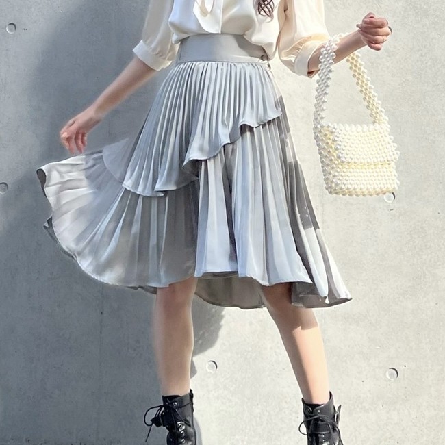 プリーツがふんだんにあしらわれた絶妙な丈感のスカート。