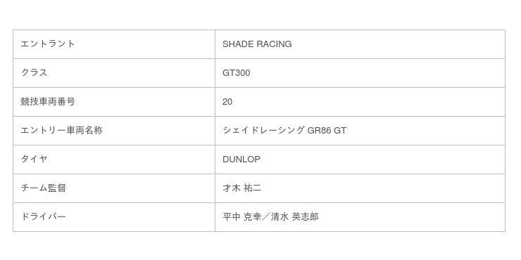 株式会社シェイドレーシング(チーム名:SHADE RACING)は、2022年 AUTOBACS SUPER GTシリーズ GT300に新たに参戦する競技車両番号が「20」に決定しました。当社が2020年にGT参戦プロジェクトを始動したことが所以です。