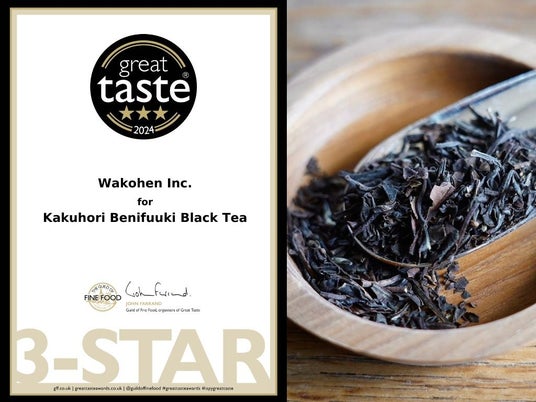 左:Great Taste 2024 3つ星 右:「カクホリ 紅茶べにふうき」の茶葉