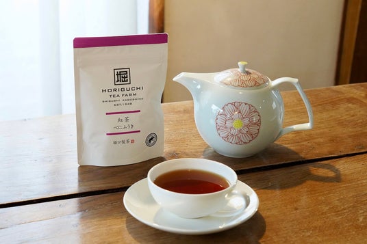 「カクホリ 紅茶べにふうき」は、セカンドフラッシュ=2番茶(夏摘み)の茶葉を原料とした本格和紅茶です。