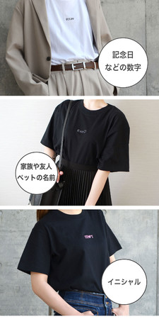 あえてTシャツと同系色のカラーをお選びいただいて、刺繍をさりげなく楽しんでいただくのもオススメです。