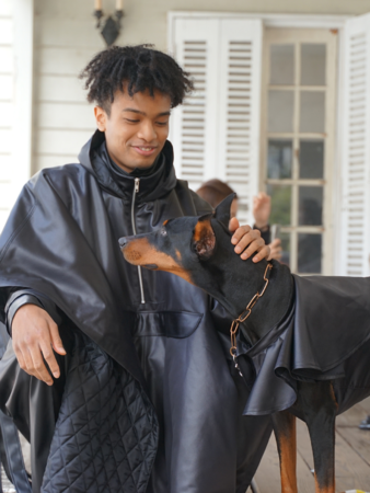 その他にも、犬と暮らす人の視点に寄り添ったパーカーや着られる絨毯を着想源としたニットのドッグウェア、犬の為のレインコートなどを共同開発。「生きる」ということを今まで以上に考えさせられた新しい挑戦でした。