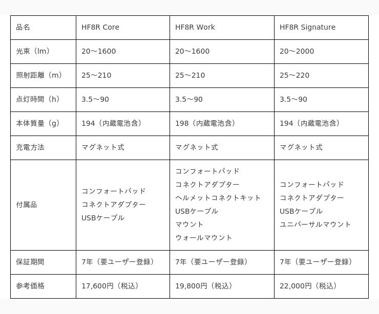 操作不要の自動調光ハンズフリーライト(HF8R Core、HF8R Work、HF8R Signature)