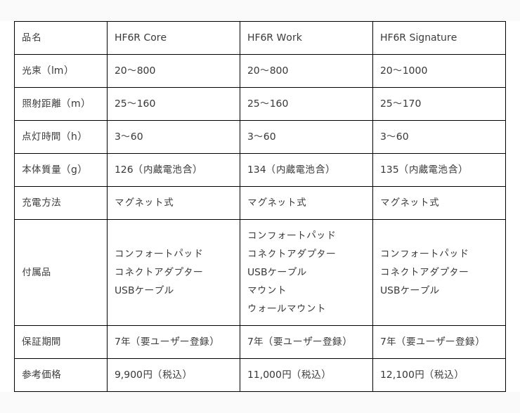 無段階フォーカス調整の3灯式スリムライト(HF6R Core、HF6R Work、HF6R Signature)