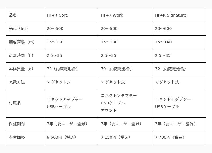 明るさ3段階の軽量コンパクトスリムライト(HF4R Core、HF4R Work、HF4R Signature)