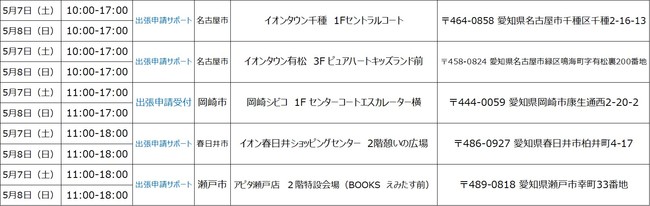 ※開催場所の調整状況や新型コロナウィルスの感染状況等により、「出張申請受付」及び「出張申請サポート」の開催を中止・延期、または実施内容が変更となる可能性がございます。
