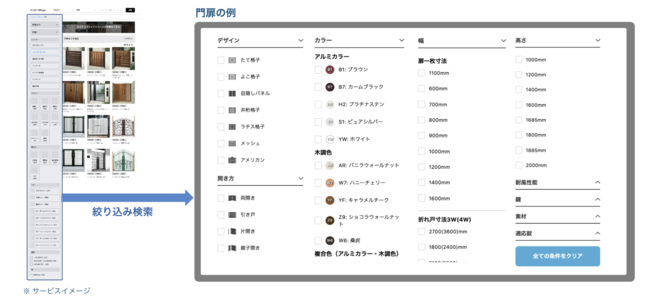 「建材サーチ」は建材商品情報の総合プラットフォームで、高い検索性により建材商品を探す手間を削減できるサービスです。今までにYKK AP株式会社が参画しており、今回新たに三協アルミが参画いたします。