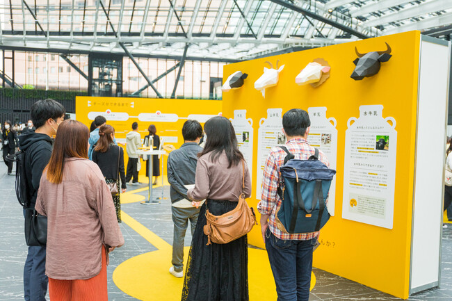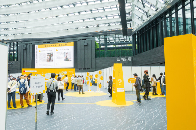チーズの魅力について展示を通して知ってもらうエリアでは、家族連れや若者が立体で視覚的に学べる展示物を楽しんだり、写真を撮ったりしながらチーズへの理解を深めました。