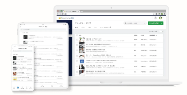 クラウド型のマニュアル作成・共有システム「Teachme Biz(ティーチミー・ビズ)」は、企業のマニュアルの作成、管理を効率化することで、生産性を大きく向上させるソリューションです。手順書の作成時間を大幅に削減するだけでなく、人材育成効率化や顧客満足度の向上など、様々な成果が報告されています。