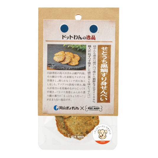 「#ドッグフードにできること」の第1弾として、岡山県瀬戸内海沖で水揚げされた「クロダイ」を使用した「ドットわんの逸品 せとうち黒鯛すり身せんべい」を、2025年5月1日(木)に発売します。