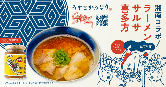 株式会社ハングオーバープレート(本社:神奈川県鎌倉市、代表取締役:山崎瑠美)は、8月27日(日)、当社のプロデュース商品「おいしいナチュール・サルサ」と「うずとかみなり(本店:神奈川県藤沢市、代表:大西芳実)」のコラボレーションにより、夏の1日限定メニュー「ラーメン・サルサ・喜多方」を提供いたします。