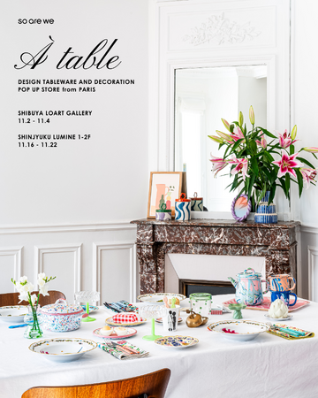 オープン期間は、「LOART GALLERY」が11月2日(木)~4日(土)の3日間、「ルミネ新宿」が11月16日(木)~22日(水)の1週間。メインテーマである「À TABLE(ア・ターブル=フランス語で「ごはんですよ」の意)」に合わせてセレクトされたテーブルウェアやインテリア、アート作品の数々を直接手に取ってご覧いただくことができ、その場での予約購入も可能。イベント限定の特典もご用意し、皆様をお迎えいたします。