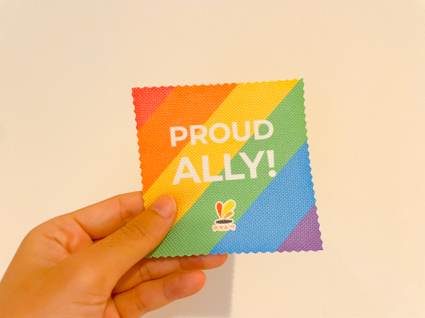 LGBTQの象徴カラー6色の虹色と「PROUD ALLY」のメッセージを込めたコースターを自宅や職場内で使用することで、自身がALLYであることの意思表示に繋がります。