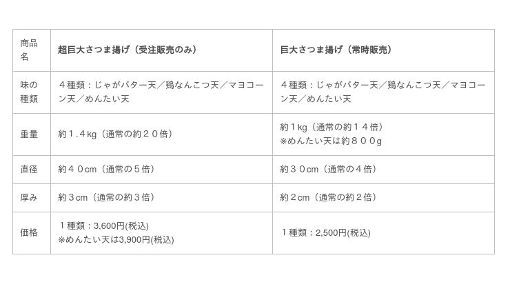 そうして、何度もの試作を兼ねて、ようやく完成したのが、人の顔よりも大きな、通常のさつま揚げ(70g)の約20枚分の分量となる、1.4キログラムの、さつま揚げです。ゴールデンウィークに開催した「せきや祭り」でテスト販売してみると、直営店にきたお客様が面白がって購入してくれ、反響が大きかったことから、直営店および自社ECサイトでも、正式に全国に販売することを決定しました。