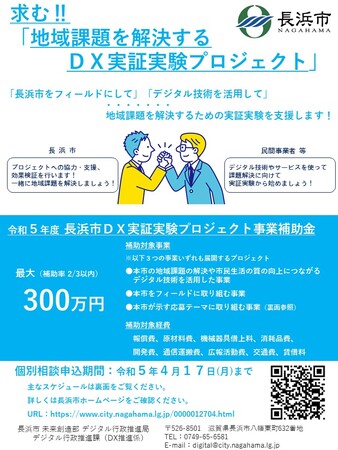 「令和5年度 長浜市DX実証実験プロジェクト事業」プロジェクト実施者公募のお知らせ