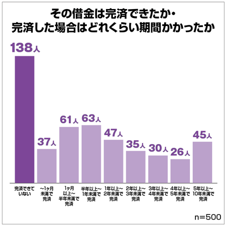 そしてその借金をいまだに完済できていない人が138人と、最多の回答に。
