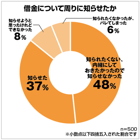 「知られたくない、内緒にしておきたかったので知らせなかった」の回答が48%で最多となりました。やはりお金を借りるということは言いにくいものですね。