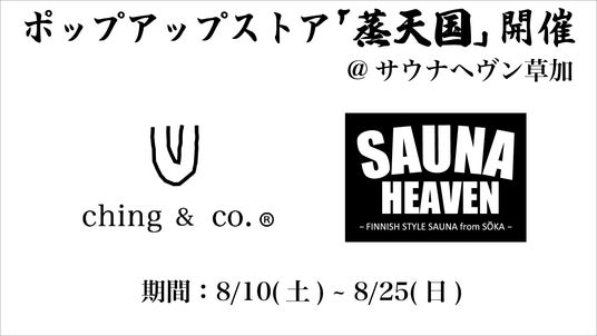 2024/08/10(土)~8/25(日)まで、2週間限定でching&co.が草加にやってくる!!!サウナヘヴン草加とのコラボ商品も店頭にて発売!この機会をお見逃しなく!