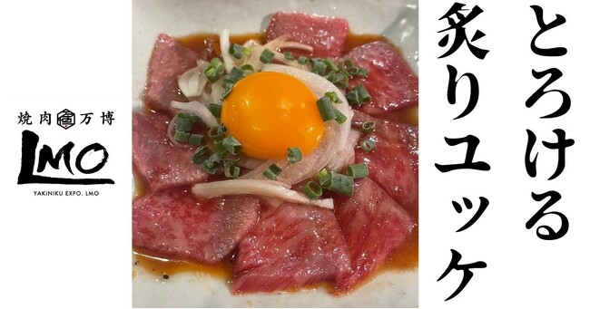 三軒茶屋にて、焼かせない焼肉「焼肉万博LMO」を展開する、株式会社LMO(本社:東京都世田谷区、代表取締役:岡田 誠太)は、新メニューとして、黒毛和牛A5ランクのリブロースを使用した新メニュー「とろける炙りユッケ」の提供を2023年9月6日(水)よりスタートいたします。