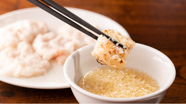 当店人気No.1メニュー!兵庫県明石市の郷土料理「明石焼き」をLMO風にアレンジした、当店オリジナルの「明石焼き」です。脂が乗ったプリプリのホルモンを、香り高い特製の合わせ出汁にくぐらせてお召し上がりください!そしてホルモンの脂の旨みが溶け込んだ出汁は、お肉との相性も抜群!是非お肉もつけてお楽しみください。最後はこの出汁をご飯にかけて!〆にも使える万能出汁を是非味わってみてください。