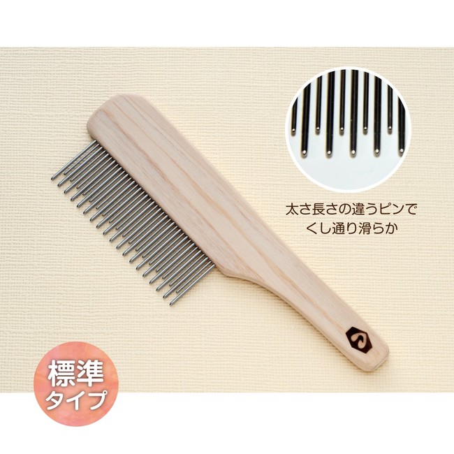 様々な犬種・猫種に対応できるよう、太さ長さの違う「標準タイプ」、長毛種などに対応した「粗目タイプ」、猫や小型犬に対応した「細目タイプ」の計3種を用意。ご自身のペットにぴったりのコームをお選びいただけます。