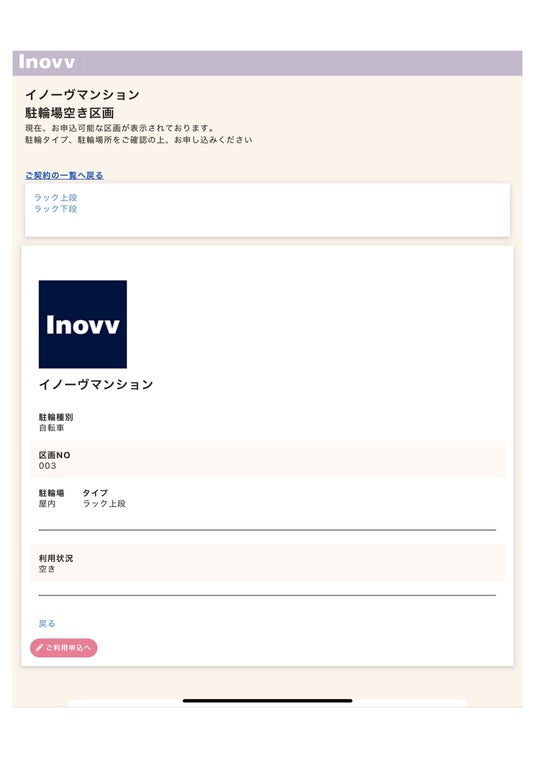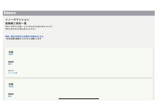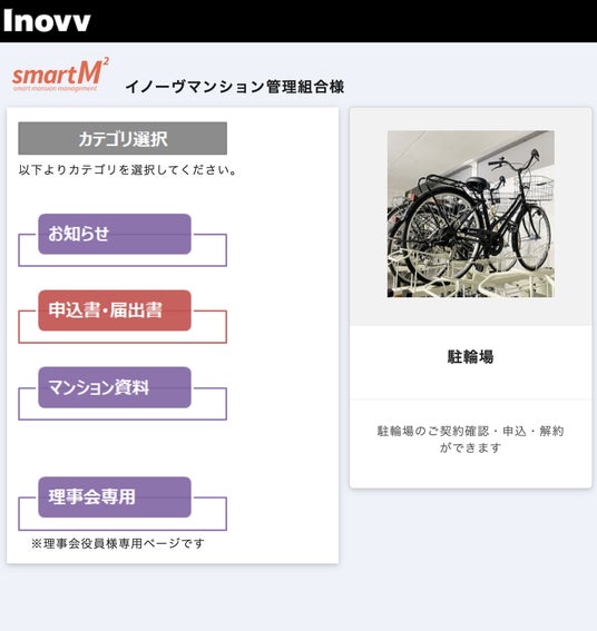 このサービスによりマンションごとに区画の振り分けが複雑な駐輪場の一覧も確認でき、申込まで簡潔にできることで、より快適な管理組合運営をサポートするサービスとなります。