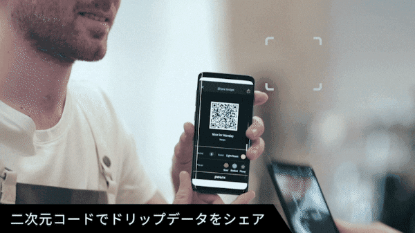 専用アプリを使えば、二次元コードを通して自分のこだわりドリップデータをシェアしたり、バリスタや友人からシェアしてもらって自分で実践してみることも可能。また、ライトガイドモードでコーヒーをドリップすると、アプリが使用したドリップデータとの類似性を即座に比較表示し、あなたにフィードバックします。
