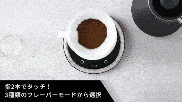 POURX OURAは3種のドリップデータが搭載されており、ボタンで選択しガイドに従ってドリップをするだけで、フレーバーのコントロールが可能。「酸味」、「バランス」、「苦味」、その日の気分に合ったフレーバーのコーヒーを自分で淹れられます。同じ豆を使ってフレーバーを比較し、お気に入りの一杯を見つけられます。