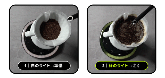 ハンドドリップ初心者の方にとって、重さと時間を同時に注意するのは難しく、面倒でもあります。複雑なドリップの過程を「音と光」に変換することで、不要な迷いを減らし、安定した注水に集中できるようになりました。