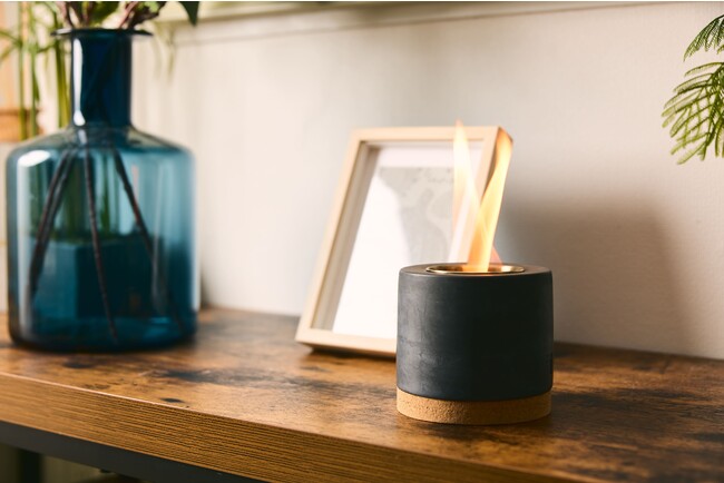 重い素材であるセメントが使われているほか、下方に重心が集まるやや台形の形を採用しているので、構造上倒れにくい設計になっています。炎の高さも平均15-20cmになるように計算されており、キャンドルより大きく暖炉より小さい、ちょうど良い大きさの炎を楽しむことができます。