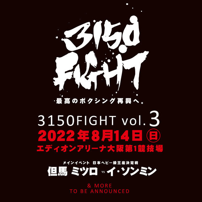 亀田興毅がプロデュースするボクシングイベント「3150FIGHT 」は、8月14日(日)にエディオンアリーナ大阪第1競技場で、初の5,000人規模の大型イベントとなる「3150FIGHT vol.3 」を開催する。