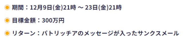 クラウドファンディングの目標金額は300万円、期間は12月9日~12月23日。
