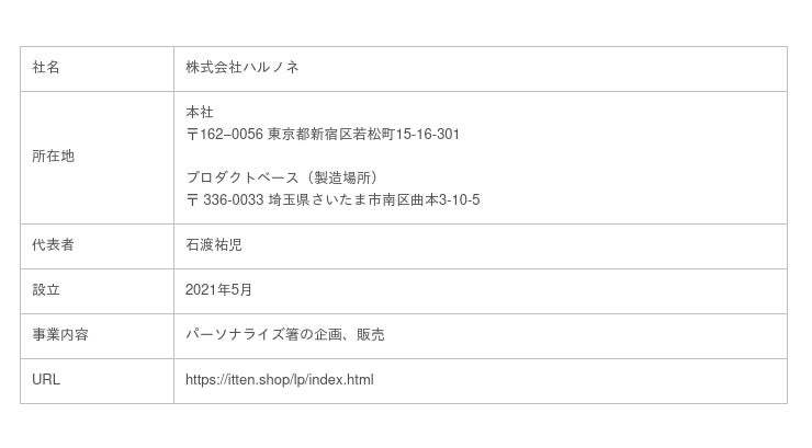 株式会社ハルノネは今年、日本初のお箸のパーソナライズサービス「itten」をリリース。
