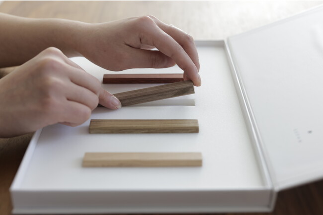 「香り」「質感」「色味」「重さ」からお気に入りの木材を1つ選びましょう。