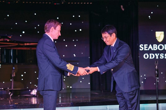 本日、シーボーン・オデッセイを迎えるこの記念すべき”引き渡し式“に参加できることを大変うれしく思います。三井オーシャンクルーズは、これまでシーボーン・オデッセイに乗船されたたくさんのお客様に愛されてきたこの美しい船を引き継ぎ、心躍るエンターテイメント、美味しい食事、そして厳選した寄港地観光ツアーを通じて「日本の美しい船旅」をお客様に提供してまいります。