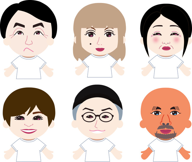 今回のリニューアルに向けて「目」を研究し、おじいちゃん、おばあちゃんの顔が作りやすくなる目尻のシワパーツや、女性向けのかわいい目元も増量しました。髪型も追加したので表現が大幅に広がりました。