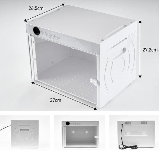 オゾン消臭&UV除菌に加え、温風での乾燥機能も搭載しており、汗をかいてニオイが気になるスポーツ用品や、濡れたスニーカーや衣類の乾燥、赤ちゃんのおもちゃやぬいぐるみ、哺乳瓶などの除菌にも対応。簡単に折りたたみができ、収納にも場所を取りません。脱臭、除菌、乾燥の全てがこの一台で解決します。