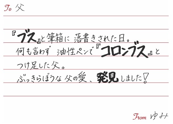 昨年度受賞作品「家族へ」のラブレター ゆみさんの作品