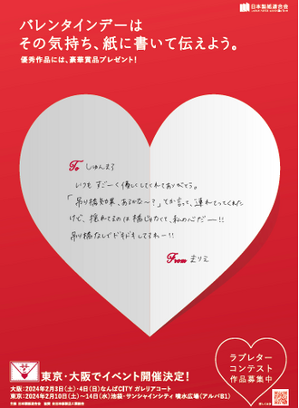 なお、専用応募用紙(送料無料)は、ホームページ(http://kamitsubu.com/campaign/loveletter/2024/)から印刷していただくか、なんばCITYガレリアコート及び池袋サンシャインシティ(アルパB1)で実施する「バレンタインデーは、手紙を書こう。」イベントでも配布しています。