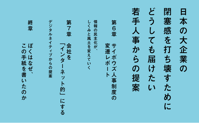そんな、自身の経験から出発して「社員が閉塞感を感じず、幸せに働ける会社をつくりたい」という理想を胸に書いたのが本書です。
